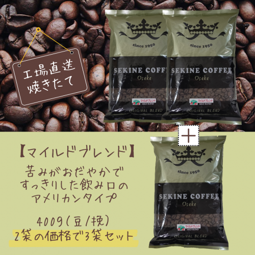 【お得な3袋セット!】工場直送ブレンドコーヒー/マイルドブレンド(400g×3袋)豆/挽き